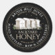 Put your bees front and centre by choosing this beautiful rendition of a backyard hive on a black background. This label exudes all the characteristics of a picturesque family business, while still maintaining a strong level of sophistication with a professional touch. Simply personalize with your apiary name, address and honey description (raw, hand bottled, single source, backyard etc.), and include your honey net weight.* People will flock back to buy more of your products, loving the image of carefully bottled backyard honey.