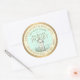 Central design features an illustration of a small backyard hive on an ivory and sky blue background. HONEY is written in a chiseled metallic gold font. Text is printed in gold. Personalize with your apiary name, address and honey description (raw, hand bottled, single source etc.). Also include your honey net weight. Common honey net weight conversions: 8oz (227g), 12oz (340g), 16oz (454g), 32oz (907g), 5lb (2.27kg).