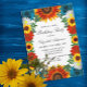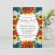 Elegant and colourful floral design for a backyard summer event. Features teal blue roses, white daisies, red wildflowers and sunflowers