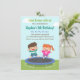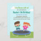 A cheerful and colourful kids birthday party invitation that has cute kids, a boy and a girl bouncing happily on a trampoline in the backyard under the clear sky. On the reverse page is a white polka dots pattern. A simple but fun birthday party activity for kids that will keep them occupied for hours. Personalise with your party details in the space provided.