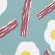 A fun food themed bacon and egg design on a teal green background, perfect for your kitchen, diner or cafe. Original art by Nic Squirrell.