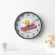 Bacon and eggs custom colour kitchen wall clock. Cute breakfast food design with two strips of bacon meat. Personalize with custom name or funny quote. Cool Birthday gift for meat lover, friends, family etc.
