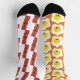 Bacon and Eggs Fun Mismatched pair of socks from Ricaso - one sock features bacon, the other sock displays egg pattern. Fun novelty pattered socks.