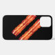Two crispy pieces of bacon accent this iPhone case on a black background, making it perfect for the bacon lover.