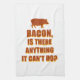 A reddish orange coloured silhouette of the side of a pig and the phrase "Bacon, Is there anything it can't do?