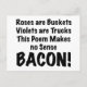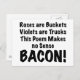 Show your love of bacon with this poem. Roses are buckets, Violets are trucks, This poem makes no sense, Bacon!