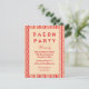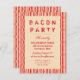A fun invitation for a bacon party or a BBQ or the like with a drawn bacon strip background and a cool typography invitation text in red.