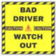 Caution Bad Driver Safety Sign - Yellow Watch Out label - A caution bad driver sticker is a type of bumper sticker that is used to warn other drivers of the poor driving skills of the person who owns the vehicle. Some people may use it as a joke, a prank, or a way to express their frustration with their own or someone else’s driving. Others may use it as a serious warning or a plea for patience from other drivers.