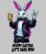 Celebrate Easter with a fun twist! This playful design features a cheerful Easter Bunny, smiling as it holds a glass in one hand and flashes the rock 'n' roll sign with the other. The bold "Hoppy Easter, Let’s Have Fun!" text adds to the lighthearted, festive vibe, making it perfect for anyone who loves humour and holiday fun. Whether you're enjoying an Easter party, a family gathering, or just want to spread some good vibes, this design is sure to bring smiles. Plus, the text and colours can be customized to match your personal style!