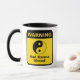 Warning - Bad Karma Ahead - coffee mug humour - warning sign style design with yin yang symbol.