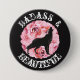 Claim your ferocity and strength by proclaiming you are a BEAUTIFUL BADASS! Feel beautiful and powerful by wearing this beautiful and fierce design of a black wolf wearing a pink flower crown howling in victory before a circle of dark pink roses surrounded with the words: Badass & Beautiful. Declare yourself a beautiful badass, even if it's only by wearing a button around the house.