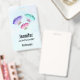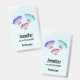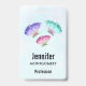 Nom badge avec un joli design. 3 papillons aquarelles, peints en rose, violet et vert. Un arrière - plan d'aquarelle bleu clair avec des touches de rose clair