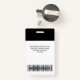 Personnalisez facilement ce badge personnalisé de nom d'employé avec photo, code de barre d'analyse et 3 logos d'entreprise multiples. Vous pouvez télécharger 3 logos d'entreprise différents, parfaits pour les partenariats et les sponsors. Un design d'entreprise simple en noir et blanc entièrement personnalisable en tailles avant et arrière, sans-serif polices de base et moderne et un look professionnel et clair. Disponible avec cordon, clip métallique ou avec rétractable. Pas de commande minimum.