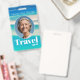 Améliorez votre look professionnel avec ce badge de l'agent de voyage avec un magnifique thème bleu océan et plage. Idéal pour les employés, cette étiquette de nom personnalisable comprend un design modèle photo et modèle QR, parfait pour les agences de voyage ou les professionnels du tourisme