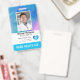 Badge d'identification vertical avec un modèle pour que vous puissiez ajouter vos coordonnées. Possibilité de l'utiliser pour plusieurs postes car vous pouvez modifier les informations pour une autre profession. Photo de l'employé et champs pour le titre ou le rôle, l'hôpital ou l'entreprise, le numéro d'identification de l'employé et "aide à domicile" ou toutes autres initiales ou texte décrivant la certification. Zone de modèle de logo ou vous pouvez conserver notre cœur avec un emblème médical à l'intérieur. Au dos, informations de retour en cas de perte ainsi qu'un modèle d'image de code-barres. Si vous n'avez pas besoin d'ajouter votre code-barres ou QR code, sélectionnez simplement "personnaliser davantage" et supprimez notre image. Conception avec un fond de lavis d'aquarelle aqua, sarcelle, bleu et violet derrière la photo de l'employé.