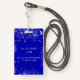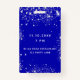 Un badge moderne, élégant et glamour pour une fête d'anniversaire de 21e (ou tout âge). Un arrière - plan bleu royal avec de la poussière de parties scintillant en faux argent. Personnalisez et ajoutez un nom. Le nom est écrit avec un script de style moderne écrit à la main avec des swashes. Texte : VIP Numéro 21. Pour que les swashes ne suppriment que le nom de l'échantillon, laissez les espaces ou émoticônes devant et après le nom. Retour : détails de votre fête.