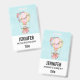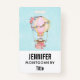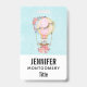 Un nom avec un design adorable avec une illustration aquarelle. Une montgolfière ornée de jolies fleurs rouges et roses. Un mignon petit ours blanc est assis dans le panier. Image sur un arrière - plan bleu clair avec votre texte sur un arrière - plan blanc.