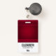 badge de nom personnalisé avec un arrière - plan rouge décoré d'élégants tourbillons et motifs ornementaux le long des frontières.
