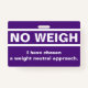 Un outil utile à transporter aux fournisseurs que vous avez choisi une approche neutre de poids et ne voulez pas connaître votre propre poids. Cet insigne peut facilement être remis à, ou être vu par, une infirmière ou un fournisseur comme un rappel non-verbal pour ne pas vous peser (ou ne pas partager avec vous ces nombres de poids). Ce produit convient pour être porté ou maintenu dans un portefeuille. Ce produit est double dégrossi.