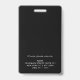 Ce badge vertical bleu marine minimaliste peut être personnalisé avec les photos et les noms de vos employés. Vous pouvez également ajouter du texte personnalisé pour le numéro d'identification de l'employé, le titre, l'emplacement, etc. Votre logo peut être inséré en haut de la conception. Personnalisez ces badges verticaux avec une photo et un nom d'employé, ainsi que deux lignes de texte personnalisé supplémentaires pour le numéro d'identification d'employé, le rôle ou le titre, l'emplacement ou d'autres données clés. Ajoutez votre logo en haut. L'arrière du badge contient vos coordonnées et les instructions de retour si elles sont trouvées. Il s'agit d'un design moderne simple qui conviendra à tout type d'entreprise.