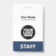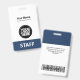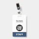 Personnalisez facilement ce badge de nom professionnel personnalisé sans photo, avec le code de la barre de numérisation et le logo d'une grande entreprise. Un design d'entreprise simple en bleu marine et blanc entièrement personnalisable en tailles avant et arrière, sans-serif polices de base et moderne et un look professionnel et clair, parfait pour les employés de petite entreprise, patron, invités. Ces fournitures de badges d'identification d'entreprise sont disponibles avec cordon, clip métallique ou avec rétractable. Pas de commande minimum, mais économiser de l'argent et profiter de rabais Zazzle par plusieurs commandes!