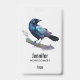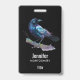 Un nom avec un joli dessin aquarelle d'un corbeau. Le bleu foncé et les couleurs violettes vives accentuent la beauté de cet oiseau.
