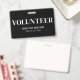 Un design de badge de bénévole simple et professionnel, parfait pour les événements, les entreprises ou les organisations qui comptent sur des bénévoles. Le mot "Bénévole" est bien visible en haut, avec un espace en dessous pour le nom de l'événement ou de l'entreprise et la date.