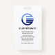 Un simple design de boîte à colonnes bleu et blanc. La couche bleue au-dessus contient une option modèle photo avec une taille photo de 1 000 x 1 000 pixels. Votre nom prestigieux se trouve juste sous le logo. Dans le calque blanc se trouve un logo global bleu optionnel que vous pouvez utiliser. À côté, il y a le nom de l'organisation et du département en plus du numéro d'employé. Le titre du travail se trouve à la base de la carte.