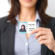 Laissez d'autres reconnaître instantanément vos employés ou employés à votre installation avec ce badge d'identification photo d'employé géométrique bleu et jaune. Inclure des renseignements tels que le nom de l'installation, le nom de l'employé, son titre et son numéro d'identification, les coordonnées, le logo, etc. Également disponible en configuration verticale.