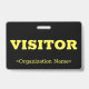 Cette conception de badge attrayante comprend le message "VISITOR", ainsi qu'un nom d'entreprise personnalisable ou un autre message personnalisé. Un badge comme celui-ci pourrait peut-être être utilisé pour indiquer qu'une personne est un invité ou un visiteur connu et autorisé dans une entreprise ou un lieu de travail. [~Z0000307]
