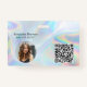 "Un badge arrière - plan holographique mignon et brillant pour les propriétaires de petites entreprises et les grandes entreprises. Le design comprend un arrière - plan moderne, script, typographie, polices tendance et simple mais efficace. Parfait pour un esthéticien ou un propriétaire de salon de beauté, un maquilleur, un costumier, un coiffeur, un coiffeur ou un cosmétologue." Ajoutez simplement votre site Web d'entreprise et nous générerons un code QR unique que vous ajoutez à votre badge. Les gens peuvent scanner le code QR pour visiter l'URL. Cliquez sur le bouton "Personnaliser" pour ajouter votre adresse de retour à l'envers afin que l'insigne puisse être retourné en toute sécurité en cas d'erreur. REMARQUE : Les détails holographiques sont simulés dans l'illustration. Il n'y aura aucun effet holographique réel de brillance lors de l'impression.