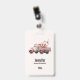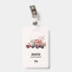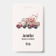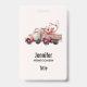 Nom badge avec une jolie illustration d'aquarelle blanche. Couleurs rose et rose. Camion ramassage avec un dossier/lit en bois ancien avec fleurs de cerisier.
