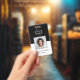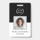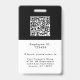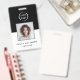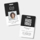Un logo professionnel de l'entreprise Badge avec photo, nom et titre de l'employé sur le devant avec logo de votre entreprise. Le dos de l'insigne a un modèle pour votre site web de l'entreprise code QR et des informations supplémentaires de l'entreprise comme souhaité. Tout le texte peut être modifié selon vos préférences. Le design noir et blanc populaire est attrayant et professionnel.
