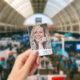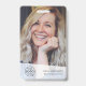 Simple, élégant badge d'identification d'entreprise qui peut être facilement personnalisé avec la photo d'identité de votre employé, son nom, sa fonction, le logo de l'entreprise, les coordonnées et le code QR ou le code-barres. Le design élégant présente une typographie minimaliste moderne et une bannière transparente. L'image affichée est à des fins d'illustration uniquement et doit être remplacée par votre propre photo. L'image de remplacement est celle d'une femme heureuse aux cheveux blonds ondulés.