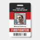 Cartes d'identité de pompier personnalisées. Customisez-le avec votre propre texte, photo de profil, logo et votre choix de code à barres ou de code qr.