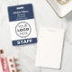 Créez une apparence professionnelle avec ce badge d'identification personnel. Un modèle simple et élégant personnalisé avec le logo, le nom, le titre de l'emploi, l'emplacement et le numéro d'employé de votre entreprise. Les coordonnées figurent au verso, ainsi qu'un code QR et des informations supplémentaires. Couleurs imprimées : bleu marine très foncé, gris et blanc. Format vertical.
