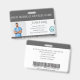 Personnalisez ces badges horizontaux du personnel médical avec une photo et un nom d'employé, ainsi que plusieurs champs de texte personnalisés pour le nom de l'hôpital ou de l'établissement de soins de santé, l'abréviation du titre, l'information sur l'unité ou le plancher, le numéro d'identification de l'employé, ou valide jusqu'à la date, avec le logo du centre médical. Le titre ou le rôle apparaît en bas en caractères blancs gras pour faciliter l'identification. Customisez avec un code à barres sur le dos si nécessaire, avec des informations de retour ou d'autres détails.