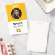Badge photo de faculté jaune personnalisé. Ajoutez n'importe quelle entreprise et le nom de l'employé, la photo, le logo, l'adresse, le numéro de téléphone, le site web et le code-barres. Disponible en plusieurs couleurs pour les besoins d'identité de votre entreprise.