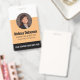 Un fond moderne à trois tons rayés (blanc/ pêche/noir) et des lettres majuscules ajoutent une touche audacieuse et professionnelle à cette carte d'identité professionnelle. Personnalisez avec photo, nom, titre de poste/références, département et logo. Les polices et les couleurs peuvent être modifiées selon vos souhaits.