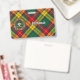 Insigne de cimier du clan Buchanan entouré d'une sangle et d'une boucle sur fond de tartan. Texte personnalisé sur les deux côtés.