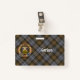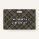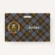 Clan Gordon crête badge entouré d'une sangle et boucle sur l'arrière - plan tartan patiné. Texte personnalisé des deux côtés.