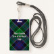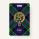 Le badge de crête Clan Leslie entouré d'une courroie et boucle sur l'arrière - plan tartan de chasse. Texte personnalisé.