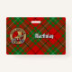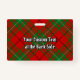 Clan MacAulay badge crête entouré d'une sangle et boucle sur l'arrière - plan tartan. Texte personnalisé des deux côtés.