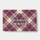 Clan MacFarlane insigne crête entouré d'une sangle et boucle sur l'arrière - plan écossais habillé. Texte personnalisé des deux côtés.