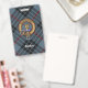 Clan MacKay crête badge entouré d'une sangle et boucle sur l'arrière - plan tartan bleu. Texte personnalisé.