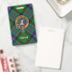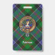 Clan Paterson crête badge entouré d'une sangle et boucle sur l'arrière - plan tartan. Texte personnalisé.
