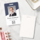 Personnalisez facilement ce nom d'employé personnalisé et badge photo avec votre propre logo d'entreprise et code qr ou code à barres. Disponible avec différentes couleurs et pièces jointes arrière - plans. Pas de quantité minimale de commande.