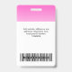 Personnalisez facilement ce badge personnalisé de nom de sécurité des employés de l'entreprise avec photo, code à barres à balayage ou code Qr et logo de l'entreprise avec un dégradé blanc sur la couleur arrière - plan. Un design d'entreprise simple dans des couleurs vives fuchsia rose et blanc avec un revêtement ombré, entièrement personnalisable dans n'importe quelle couleur dans les tailles avant et arrière, sans-serif polices de base et moderne et un look professionnel, élégant et clair. Les badges sont disponibles avec cordon, clip métallique ou avec rétractable. Pas de commande minimum.