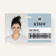 Élégant bleu Dusty Employé Photo d'état-major Badge Personnalisez facilement ce badge personnalisé de nom d'employé avec photo, code de la barre de numérisation et logo de l'entreprise, avec nom des personnes, profession, code de barre d'identité optionnel, avec clip métallique inclus. Un badge de marque utile pour identifier le personnel, les visiteurs ou les invités. Un design d'entreprise simple aligné à gauche dans un beau bleu clair et blanc entièrement personnalisable en tailles avant et arrière, sans-serif polices de base et moderne et un look professionnel et clair. Un outil utile pour les événements d'entreprise, les réunions, les nouvelles et les célébrations. Créez plus de carte d'identification de badge photo d'entreprise en différentes couleurs pour toute catégorie que vous devez identifier : personnel, visiteurs ou invités. Disponible avec ou sans nacelle, clip métallique ou avec rétractable. Pas de commande minimum.