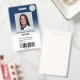 Un badge d'identification de photo d'infirmière ombré bleu foncé moderne et professionnel éditable avec logo et code-barres.